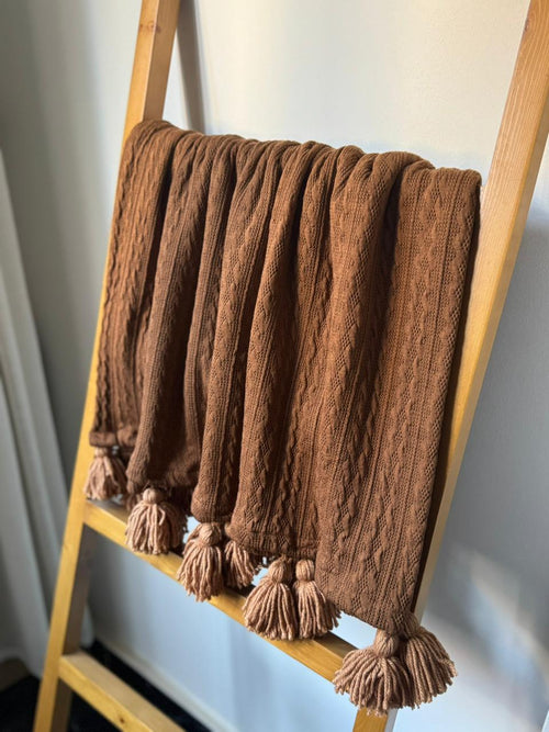 Add warmth and effortless style to your living space with this beautifully textured tassel throw blanket. Crafted from soft, breathable fabric, it features an elegant woven pattern with charming tassel details along the edges. Perfect for draping over a sofa, bed, or ladder rack, this throw blends comfort with modern, minimal aesthetics. Available in rich and neutral tones, it complements a wide range of interior styles—from cozy bohemian to contemporary décor. Ideal for layering, relaxing, or elevating your home décor.